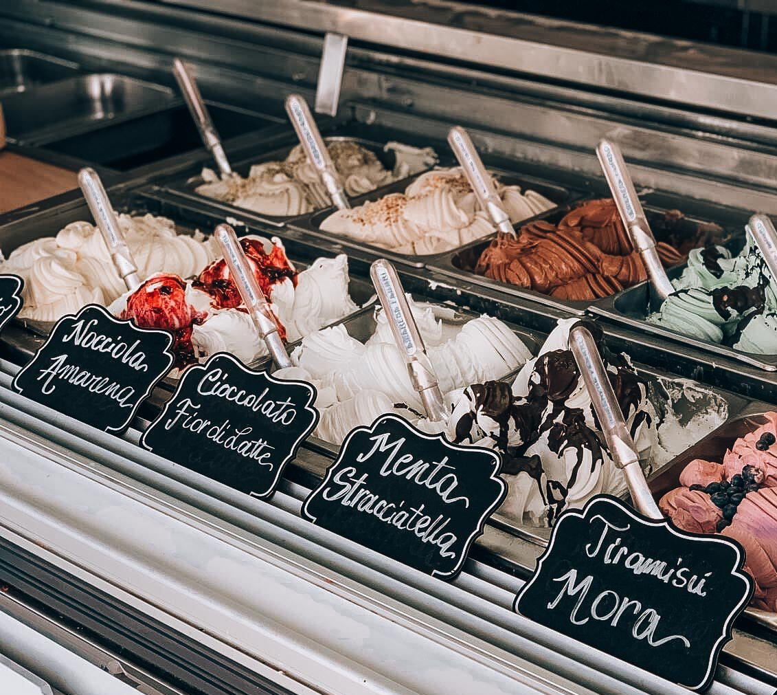Gelato di produzione artigianale, preparato e ottenuto da miscele con ingredienti di origine controllata, gusti innovativi e qualitativamente sorprendenti.